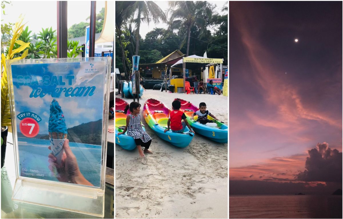 Long beach to również miejsce, wokół którego koncentruje się nocne życie na wyspie. Wieczorem otwierają się tam restauracje serwujące świeże ryby i owoce morza, niewielkie bary na plaży, zaczynają się również imprezy oraz pokazy tańca z ogniem. W tym miejscu mogę jednak uspokoić osoby poszukujące spokojnego wypoczynku – wieczorne balangi z Perhentian w niczym nie przypominają tych znanych z tajskich wysp. Na miejscu będzie natomiast okazja na spróbowanie jednego z lokalnych wynalazków, czyli… lodów z solą morską!