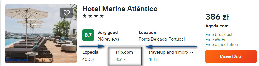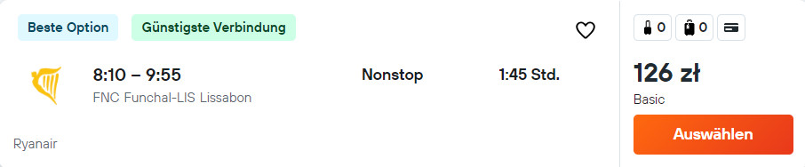 Przygotowany przeze mnie wyjazd składa się z czterech niezależny rezerwacji lotów na trasach: Warszawa Modlin-Lizbona-Warszawa Modlin, Lizbona-Ponta Delgada, Ponta Delgada-Funchal oraz Funchal-Lizbona.