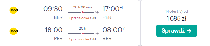 Podróżować będziecie na pokładach samolotów linii lotniczych Scoot, Virgin Australia i Jetstar. Pamiętajcie też, że bez dodatkowych opłat możecie zabrać jedynie bagaż podręczny.