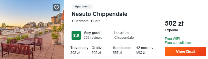 W Sydney wybrałem dla was noclegi w świetnie ocenianym apartamencie Nesuto Chippendale. Do waszej dyspozycji zostanie oddany pokój z prywatną łazienką i dostępem do Wi-Fi. Ponadto będziecie mogli skorzystać z jacuzzi i basenu.