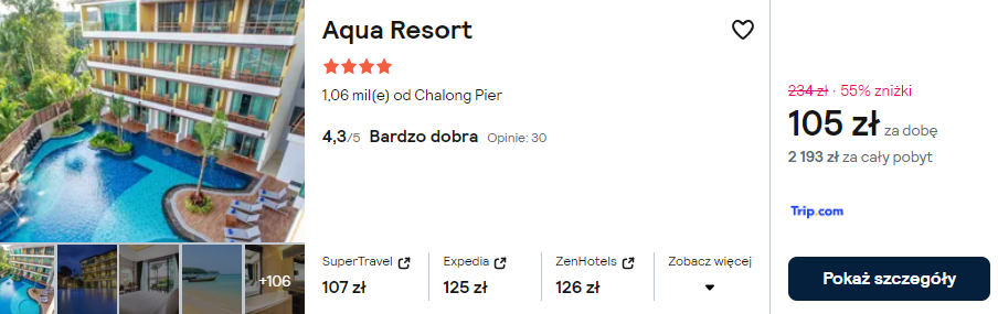 Na dłuższy pobyt rekomenduję zakwaterowanie w 4* Aqua Resort. Obiekt oferuje odkryty basen i przestronne, klimatyzowane pokoje, w których (w razie potrzeby) znajdziesz miejsce do pracy z laptopem.