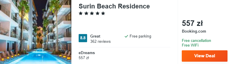 Zarezerwujcie dla siebie noclegi w 5* Surin Beach Residence. Najbliższa plaża znajduje się w odległości kilkuminutowego spaceru od obiektu.