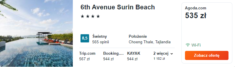 Na wyspie rekomenduję wam wybrać 4* hotel 6th Avenue Surin Beach. Do waszej dyspozycji będzie tam m.in. basen na dachu z panoramicznym widokiem na okolicę!