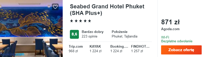 Na Phuket zatrzymacie się w 5* Seabed Grand Hotel, który oferuje odkryty basen, bezpłatny prywatny parking, centrum fitness oraz bar. Na słonecznym tarasie znajdziecie darmowe leżaki i parasole.