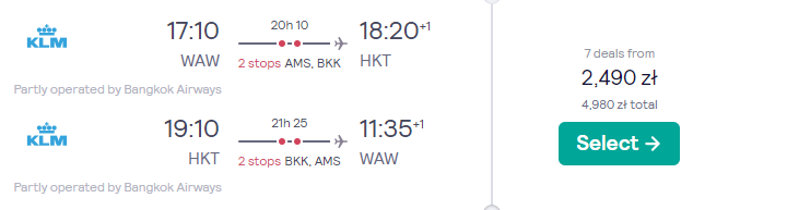 Na wycieczkę do Tajlandii udacie się w terminie 12(13) 20(21) września. Czekają was loty z Warszawy, realizowane na pokładzie samolotów linii lotniczej KLM oraz Bangkok Airways. Po drodze zaplanowano bezpieczne, gwarantowane przez przewoźników przesiadki w Amsterdamie i Bangkoku.