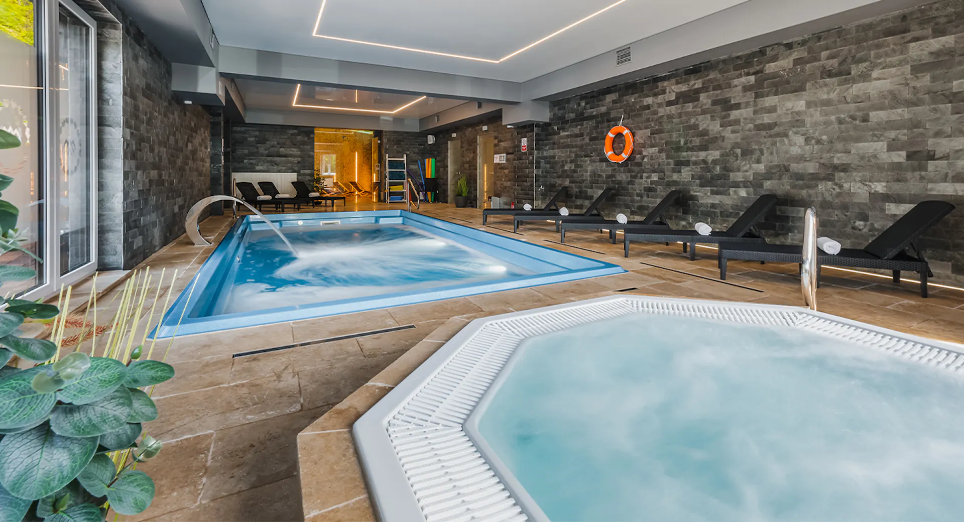 W cenie otrzymasz noclegi w komfortowo urządzonym pokoju oraz śniadania i obiadokolacje w formie bufetów. W pakiecie Travelist.pl dostaniesz również wstęp na basen, a także dostęp do sauny fińskiej i łaźni parowej, groty solnej oraz jacuzzi.