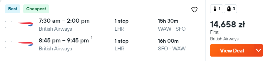 Luksus w chmurach: loty PIERWSZĄ KLASĄ do San Francisco, Los Angeles i Seulu oraz na Hawaje z Polski od 14658 PLN