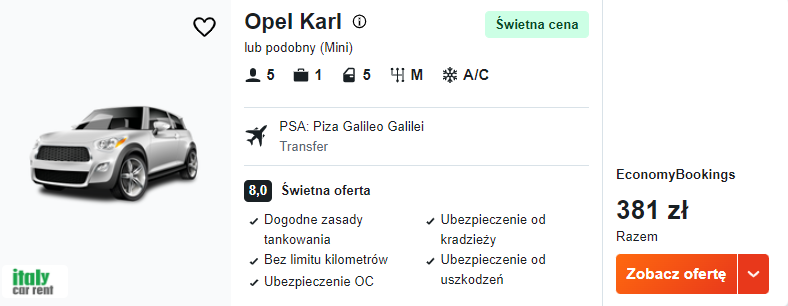 Wypożyczony samochód przyda się, by zobaczyć również inne atrakcje w Toskanii.