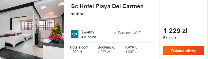 Po wylądowaniu w Meksyku polecam wam od razu zostawić za sobą Cancun, unikając w ten sposób tłumów odwiedzających kurort oraz zawyżonych cen. Wybrałem dla was noclegi w pobliskim Playa del Carmen, w komfortowym 3* SC Hotel Playa del Carmen – bardzo dobrze ocenianym hotelu położonym niedaleko plaży.