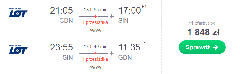 PLL LOT: Singapur z polskich miast od 1848 PLN