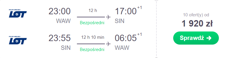 Singapur sam w sobie może stanowić cel waszej podróży lub być doskonałą bazą wypadową na cały region. Warto zaznaczyć, że lecąc z Warszawy, podróż odbędziecie bez przesiadek. Co ważne, w podróż do Azji wybierzecie się z bagażem rejestrowanym. Połączenia do Singapuru dostępne są także z innych polskich lotnisk. W kalendarzach sprawdzicie terminy lotów z Krakowa, z Gdańska, z Wrocławia, z Poznania, z Katowic.