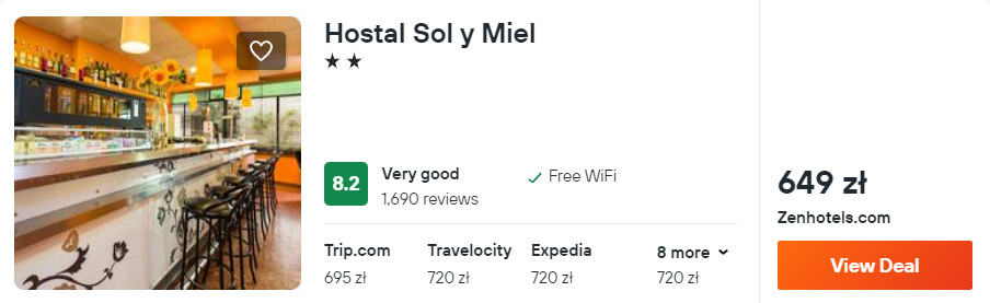 Na miejscu zatrzymasz się w obiekcie Hostal Sol y Miel, który znajduje się nieopodal plaży w miejscowości Benalmádena. Z lotniska w Maladze w okolice miejsca noclegowego dojedziecie pociągiem regionalnym C1 (przystanek o tej samej nazwie co miejscowość) lub wypożyczonym samochodem – szczegóły poniżej.