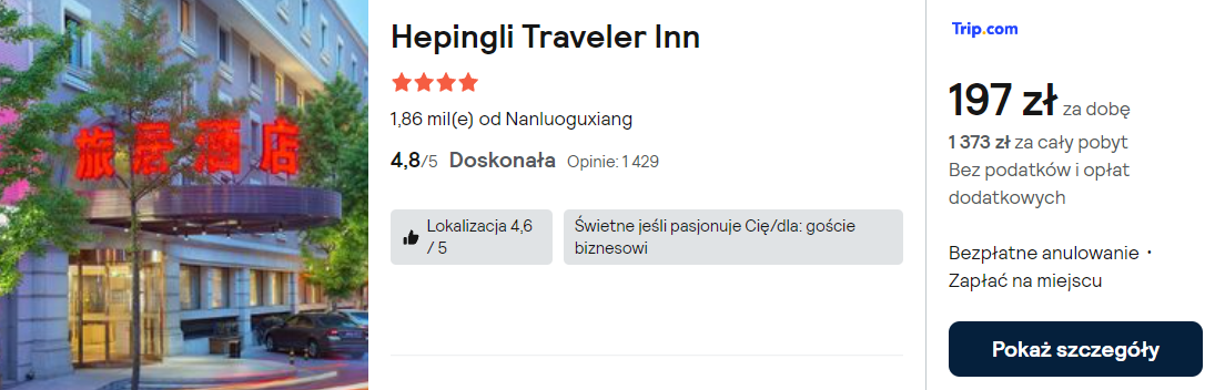 W Pekinie polecam 4* hotel Hepingli Traveler Inn. Dotychczasowi goście pozytywnie oceniają pobyt w tym miejscu.