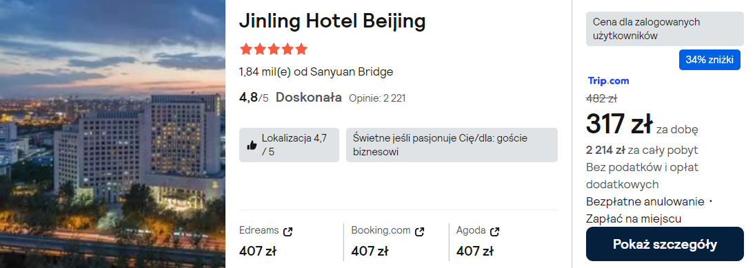 Potrzebujesz nieco więcej luksusu? W takim razie postaw na 5* hotel Jinling. Na miejscu znajdziesz basen i komfortowo urządzony pokój z prywatną łazienką oraz dostępem do WiFi.