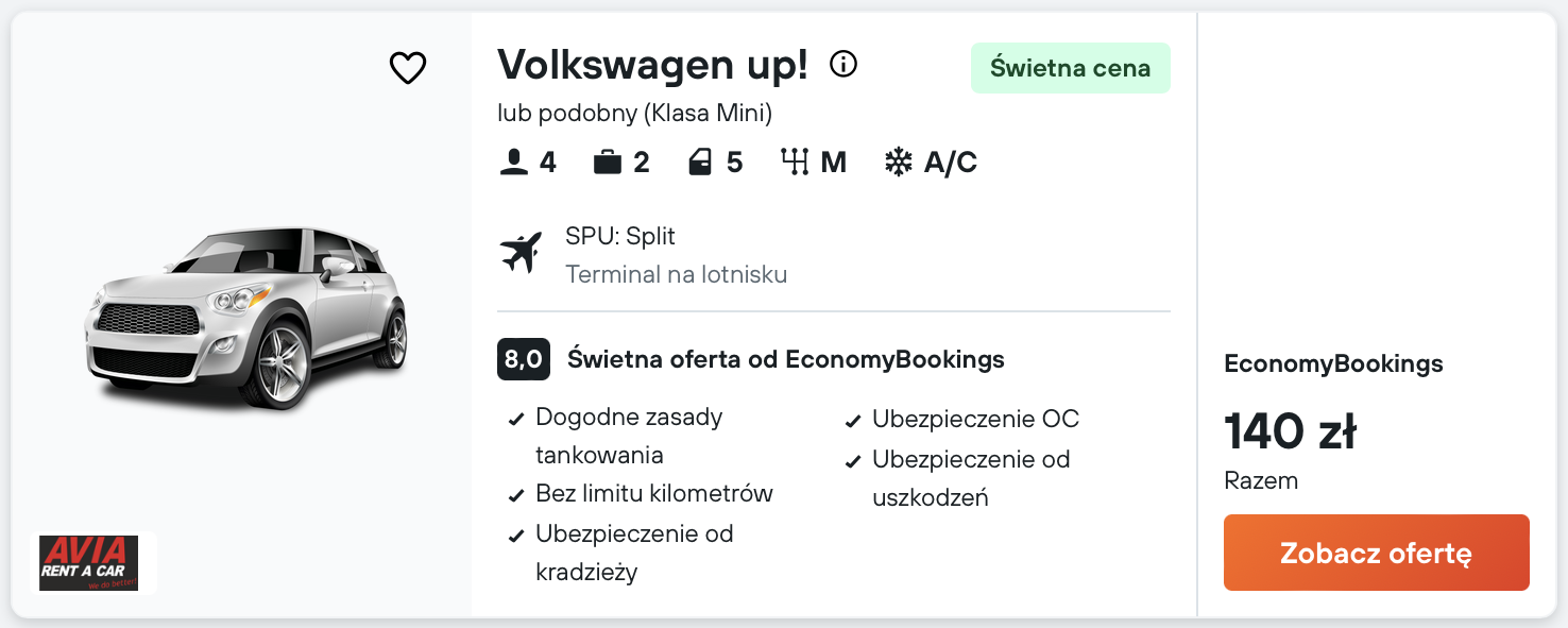 Aby zobaczyć wszystkie okoliczne atrakcje, wypożycz samochód już na lotnisku w Splicie.