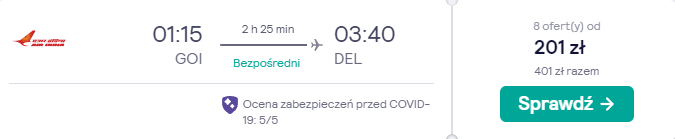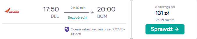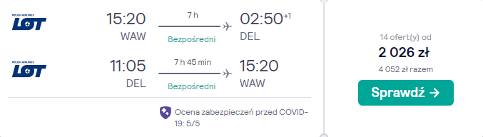 Początek waszej podróży zaplanowany jest na 12 marca, kiedy to z lotniska im. Fryderyka Chopina w Warszawie polecicie do New Delhi. Loty realizowane będą na pokładzie samolotu linii lotniczych Finnair. Po drodze czeka was bezpieczna przesiadka w Helsinkach. 16 marca ze stolicy Indii udacie się do Mumbaju. Na miejscu zostaniecie do 21 marca, po czym skierujecie się do Marmagao. 27 marca wrócicie do New Delhi, po czym udacie się w drogę powrotną do Polski.