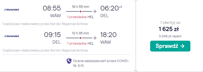 Linia lotnicza: Finnair i Air India lub PLL LOT i Air India