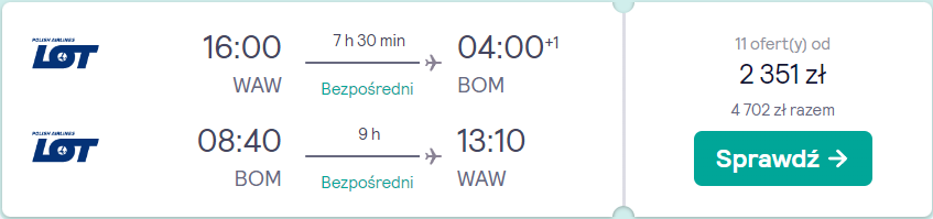 W podróż do Indii udacie się w terminie 1 (2) – 9 marca z Warszawy. Loty do Azji realizowane będą bezpośrednio na pokładzie samolotów PLL LOT. Z Mumbaju do Goa polecicie natomiast linią lotniczą Go First.