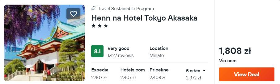 W stolicy Japonii zatrzymasz się w niezwykłym i bardzo dobrze ocenianym 3* hotelu Henn. To wyjątkowy obiekt, który obsługiwany jest przez roboty! Na recepcji, zamiast ludzi, czekać na ciebie będą maszyny. Krótką relację z pobytu w tym miejscu możesz zobaczyć tutaj. Z lotniska Tokio Narita do centrum miasta dojedziesz pociągiem. Więcej informacji na ten temat dostępnych jest w tym wątku na forum.