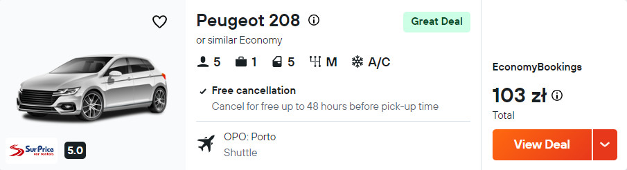 Zachęcam cię także do wypożyczenia samochodu po przylocie do Portugalii. Mając do swojej dyspozycji auto, możesz wybrać się na wycieczkę nad Ocean Atlantycki, do Fatimy czy nawet Lizbony.