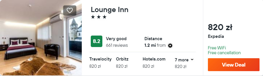 W Porto rekomenduję ci noclegi w 3* hotelu apartamentowym Lounge Inn. Każde studio składa się z aneksu kuchennego, miejsca do relaksu i spania oraz łazienki z prysznicem. Na terenie całego obiektu będziesz mieć zapewniony dostęp do sieci WiFi.