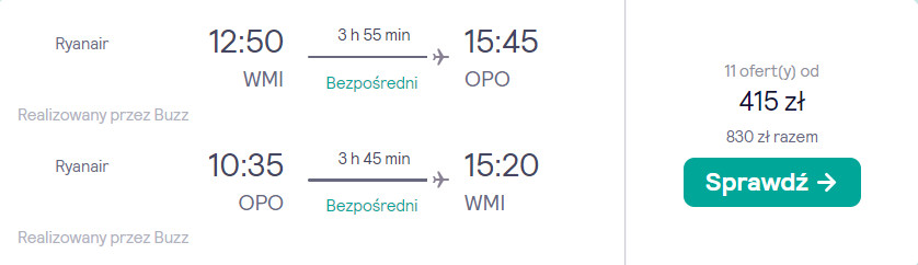 Do Portugalii udasz się z warszawskiego lotniska w Modlinie w terminie 9-12 grudnia (piątek-poniedziałek). W obie strony polecisz bezpośrednio na pokładzie samolotu linii Ryanair z wliczonym małym bagażem podręcznym.