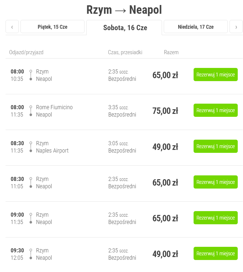 Flixbus | Rzym – Neapol | kilkanaście kursów dziennie | 49 PLN | 13, 14, 15, 16 czerwca