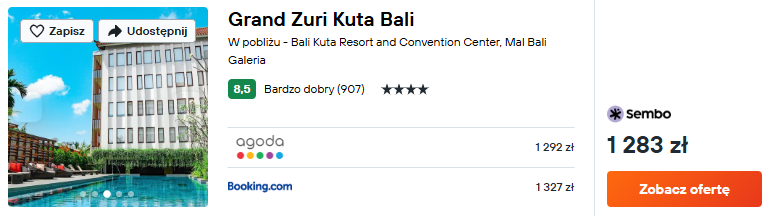 Wybrałem noclegi w bardzo dobrym 4* hotelu Grand Zuri Kuta Bali. Obiekt doskonale sprawdzi się, jako baza wypadowa oraz dogodne miejsce na wypoczynek w trakcie urlopu.