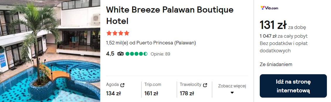 Na Palawanie zatrzymaj się w bardzo dobrze ocenianym 4* hotelu White Breeze. Na miejscu będziesz zakwaterowany w przytulnym pokoju z balkonem. W cenę noclegów wliczono śniadania.