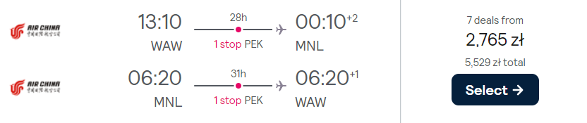 Wyjazd w tytułowej cenie składa się z dwóch rezerwacji: loty z Warszawy do Manili, a następnie ze stolicy na Palawan. Czeka cię podróż na pokładzie samolotów linii lotniczej Air China z przesiadkami w Pekinie, a następnie bezpośredni lot wewnątrz Filipin z linią Cebu Pacific. Przy przesiadce w Chinach należy wypełnić deklarację zdrowia i zrobić test na COVID (może być domowy test do samokontroli).