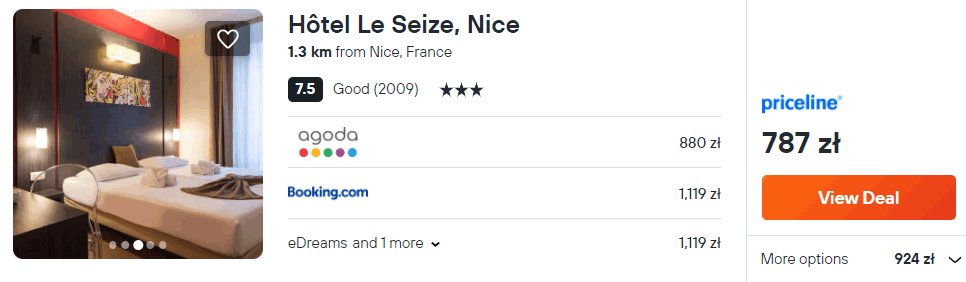 Na południu Francji zatrzymasz się w 3* hotelu Le Seize, który znajduje się w samym sercu Nicei. Z lotniska w okolice miejsca noclegowego dojedziesz komunikacją publiczną.