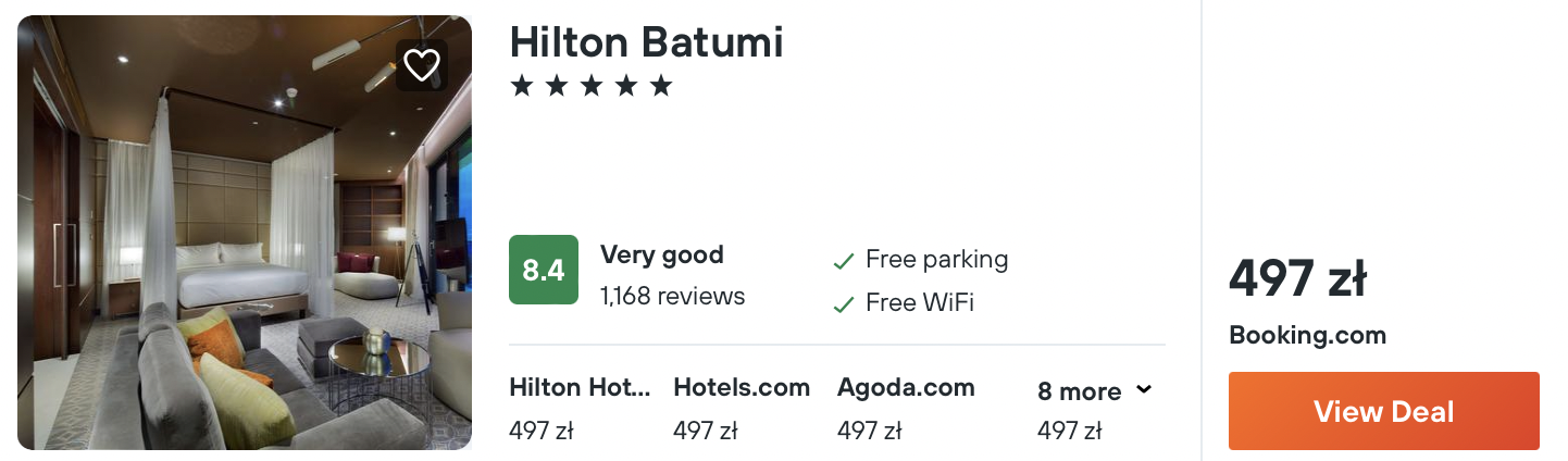 Natomiast w Batumi wybierzcie luksusowe zakwaterowanie w 5* hotelu Hilton. Do waszej dyspozycji zostanie oddany basen wewnętrzny i strefa spa.