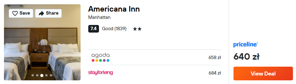 Americana Inn położony jest pomiędzy Bryant Park, Empire State Building a stacją metra (34 St-Herald Sq) – czyli idealne miejsce na eksplorację Nowego Jorku.