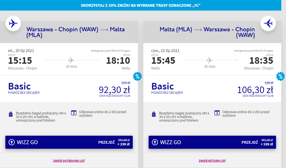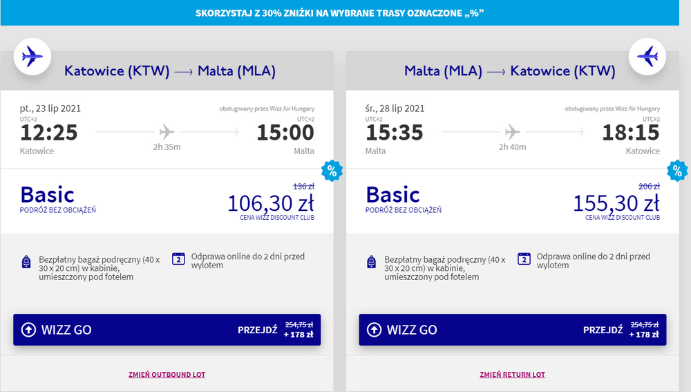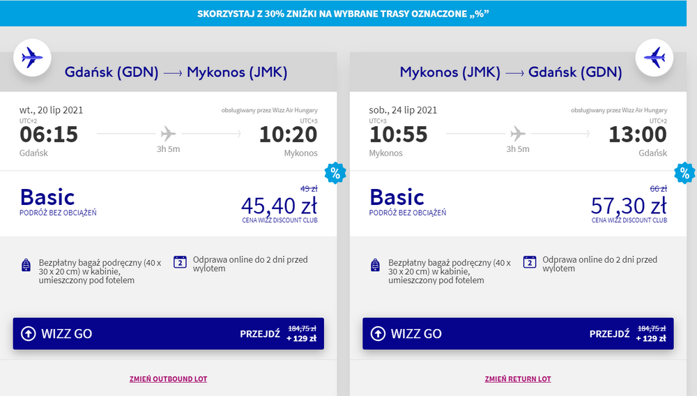 Specjalnie dla was wybrałem same gorące, wakacyjne kierunki, m.in. z Gdańska, Katowic, Lublina i Warszawy. W cenach od 103 PLN do 262 PLN udać się będziecie mogli do Malagi, Olbii, Podgoricy, Splitu oraz na Maltę, Mykonos i Santoryn. Pamiętajcie, że najtańsze bilety dostępne są dla członków Wizz Discount Club, chętni na loty bez WDC zapłacą nieco więcej.