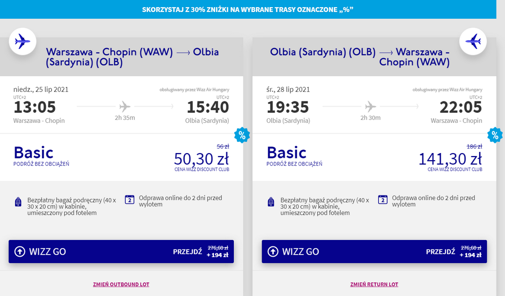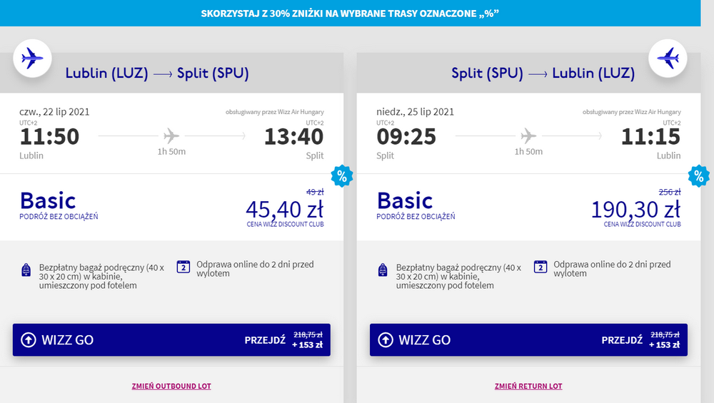 Promocyjne ceny biletów dostępne są tylko i wyłącznie na podróże w lipcu! Obniżką (30-procentową) objęte są wszystkie loty z siatki węgierskiej linii lotniczej Wizz Air.