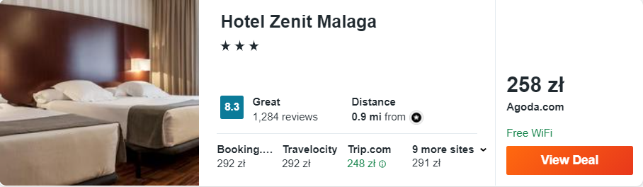 W Maladze zatrzymajcie się w 3 hotelu Zenit, który znajduje się w odległości 20 minut spacerem od centrum miasta. Wszystkie pokoje są klimatyzowane i posiadają łazienkę z prysznicem.