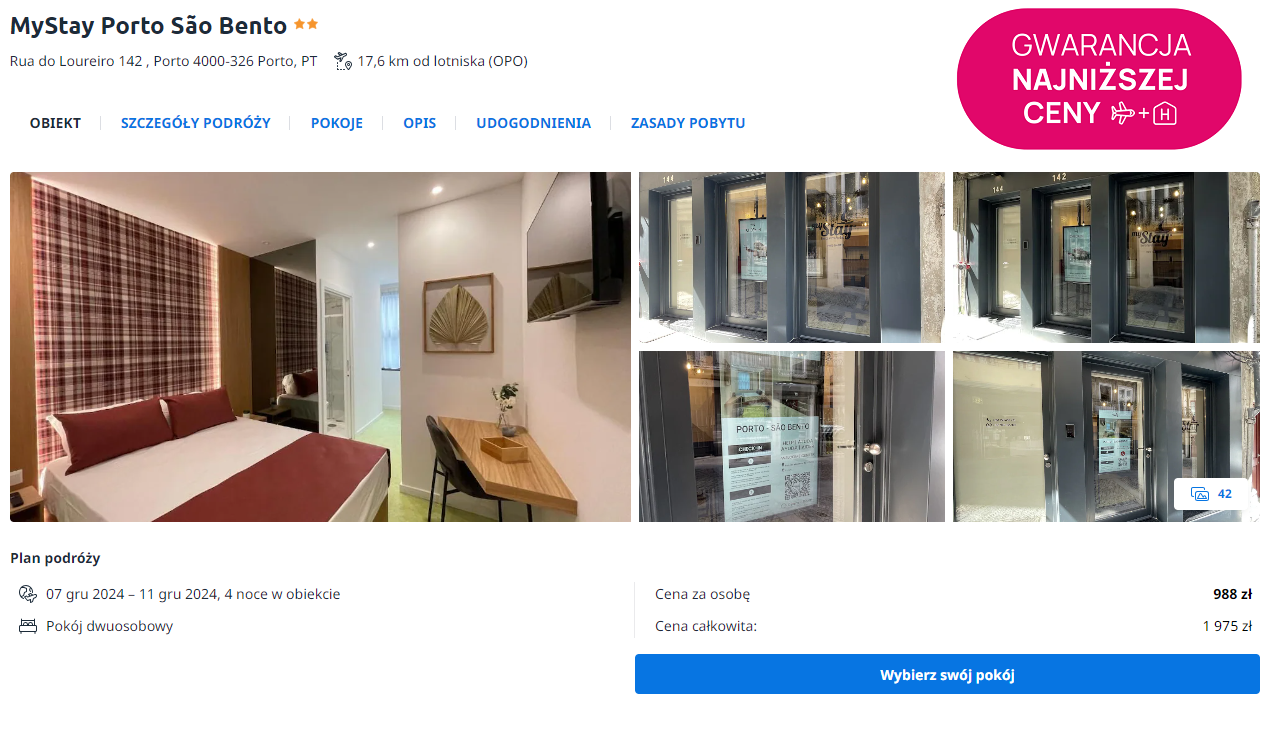 Do Portugalii udasz się w terminie 7 – 11 grudnia (sobota – środa). Do Porto polecisz bezpośrednio z Krakowa linią Ryanair. W cenie możesz zabrać bagaż podręczny.
