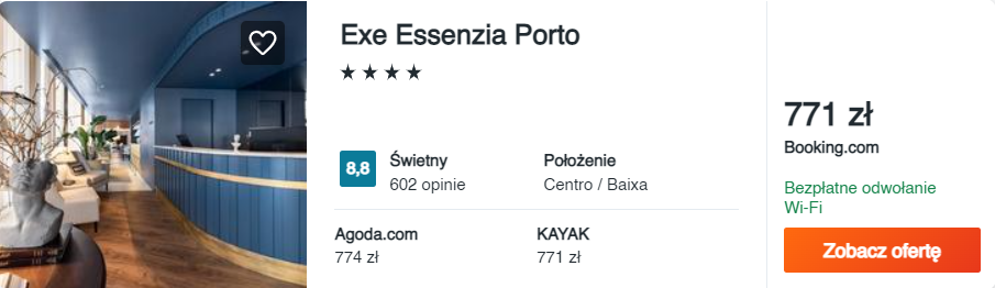 Na miejscu wybrałam dla was noclegi w samym sercu miasta, w świetnie ocenianym 4* hotelu Exe Essenzia, który położony jest w dzielnicy Baixa.