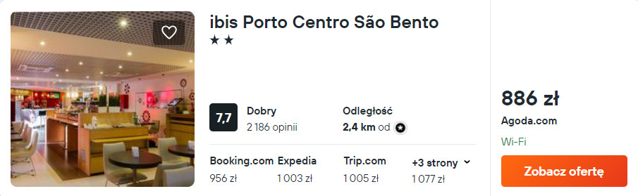 W Porto polecam ci noclegi w hotelu ibis Porto Centro São Bento. Każdy pokój wyposażony jest w klimatyzację z funkcją ogrzewania oraz telewizor LCD. W łazience jest prysznic, suszarka do włosów oraz podstawowe przybory toaletowe.