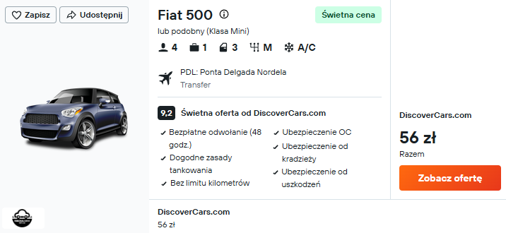 Aby komfortowo zwiedzać wszystkie zakątki wyspy São Miguel, wypożycz samochód od razu po wylądowaniu w Ponta Delgada.