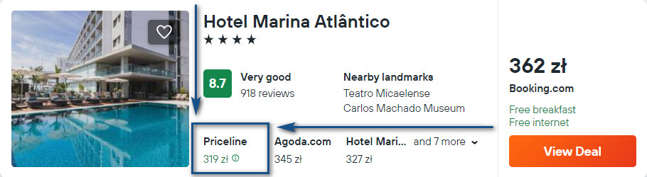 W Ponta Delgada możesz także wybrać opcję pobytu w 4* hotelu Marina Atlântico z krytym basenem. Znajduje się on w samym centrum miasta. W cenie zapewnione będziesz mieć codzienne śniadania oraz dostęp do sauny oraz sieci WiFi.