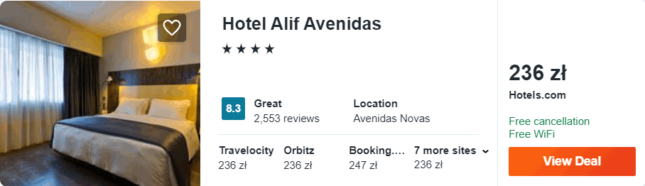 W Lizbonie proponuję wam noclegi w 4* hotelu Alif Avenidas, który od słynnego parku Edwarda VII oddalony jest o 700 metrów. Wszystkie pokoje są klimatyzowane i posiadają prywatną łazienkę z wanną i prysznicem. Na terenie całego obiektu będziecie mieli zapewniony dostęp do sieci WiFi.