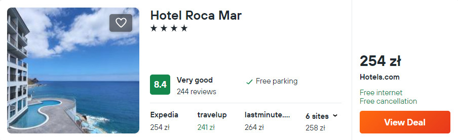 Na Maderze proponuję ci noclegi w 4* hotelu Rocamar Lido Resort, który znajduje się w miejscowości Caniço de Baixo. W cenie zapewniony będziesz mieć dostęp do sieci WiFi oraz codzienne śniadania.