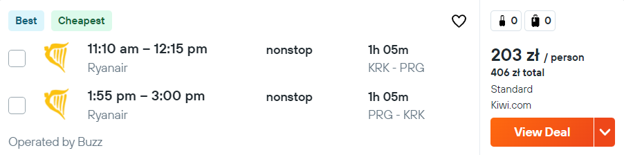 Do Pragi wylecicie w piątek 30 września z krakowskiego lotniska w Balicach, a do stolicy województwa małopolskiego wrócicie w poniedziałek (3 października). W obie strony polecicie na pokładach samolotów linii Ryanair z wliczonym małym bagażem podręcznym.
