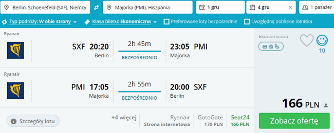 Kup bilety z Berlina (Schoenefeld) do Hiszpanii (Majorka) za 166 PLN: