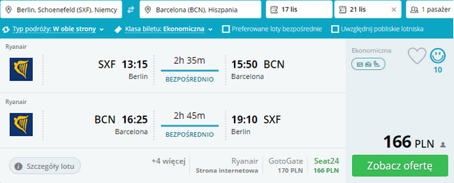 Kup bilety z Berlina (Schoenefeld) do Hiszpanii (Barcelona) za 166 PLN: