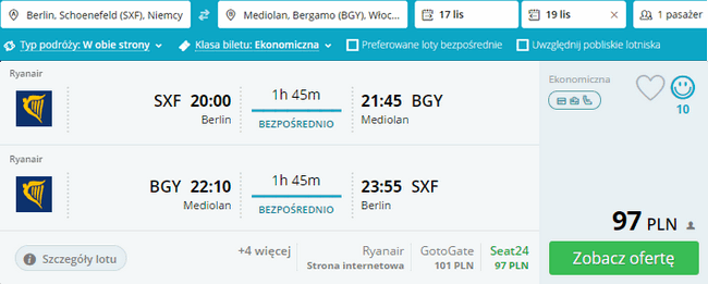 Kup bilety z Berlina (Schoenefeld) do Mediolanu (Bergamo) za 97 PLN: