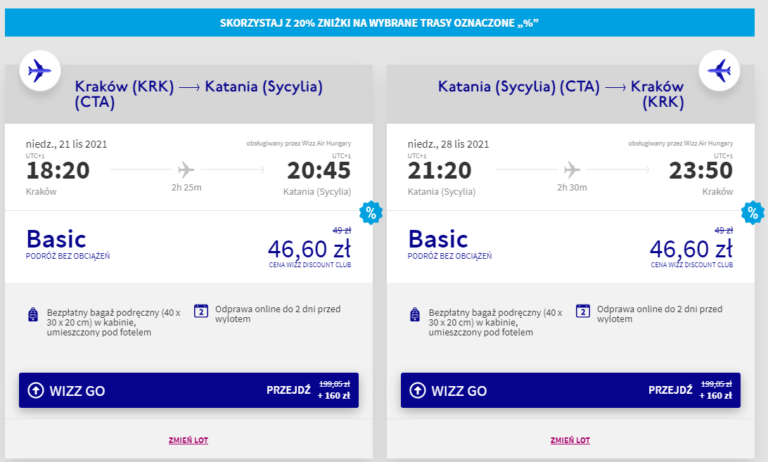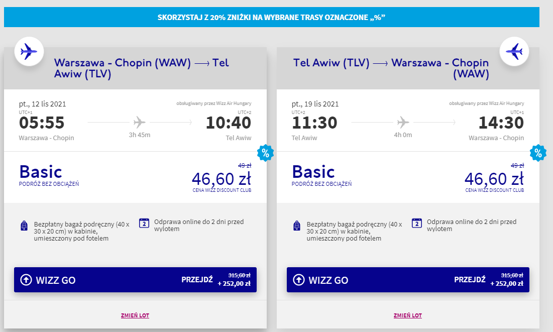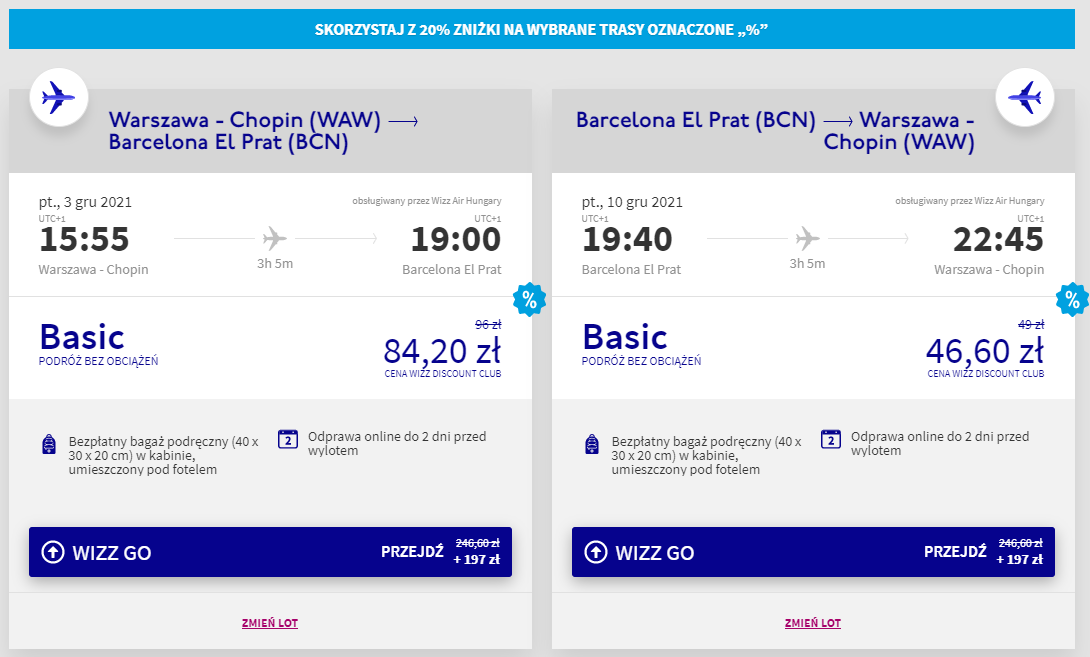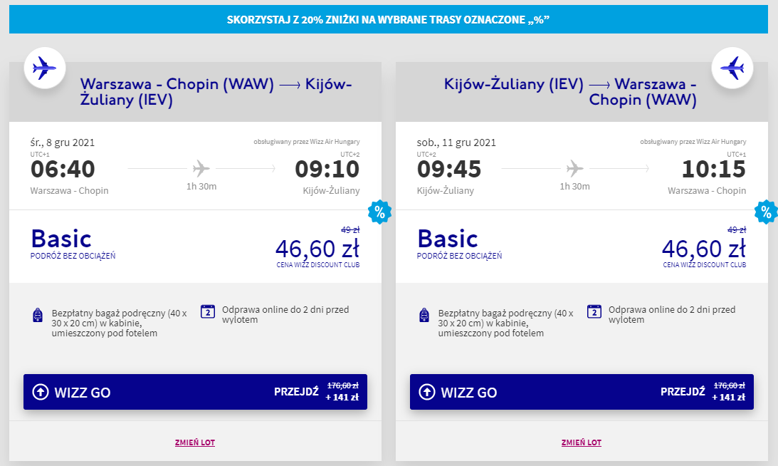 Linia lotnicza: Wizz Air, cena dla posiadaczy WDC