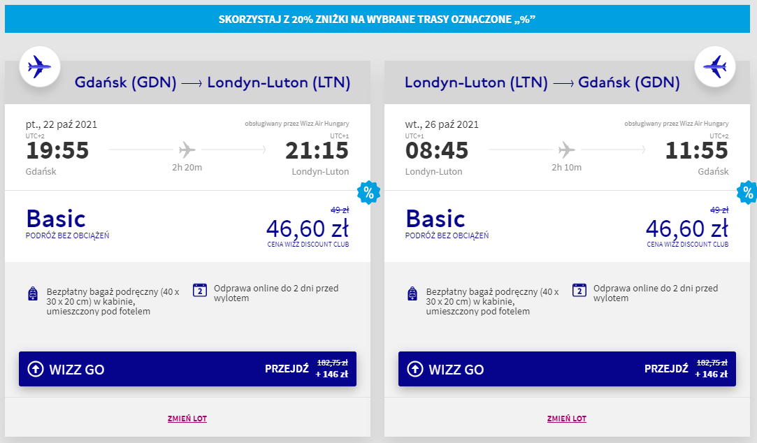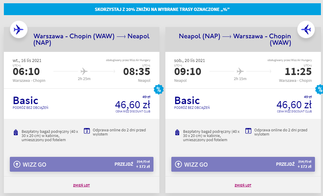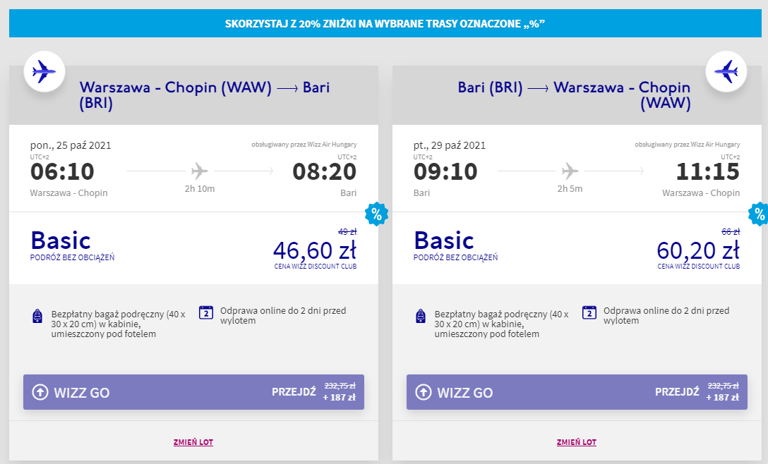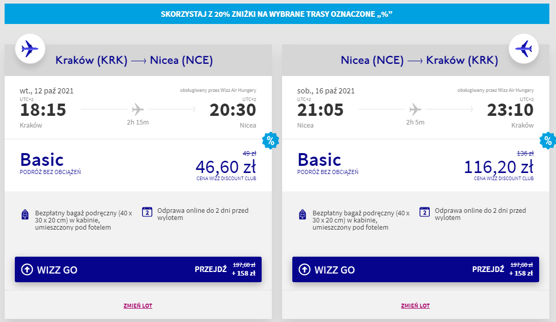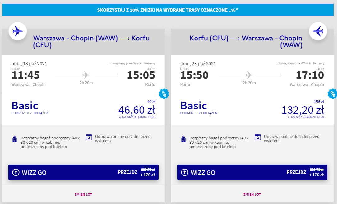 Linia lotnicza: Wizz Air, cena dla posiadaczy WDC