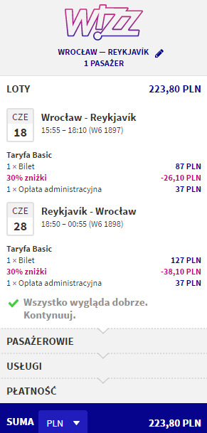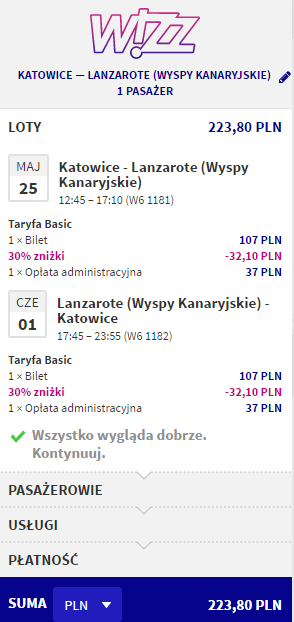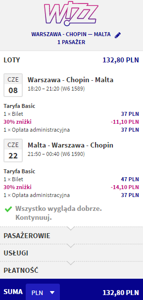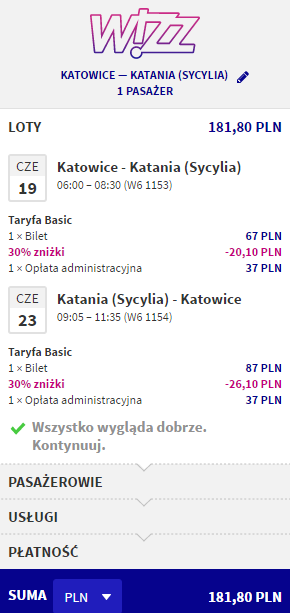 W najniższych cenach bilety dostępne są dla osób posiadających wykupione członkostwo Wizz Discount Club oraz wybierających się w podróż z małym bagażem podręcznym o maksymalnych wymiarach 42 x 32 x 25 cm. Pozostałe osoby zapłacą więcej.